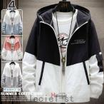 メンズマウンテンパーカー薄手夏ジャンパー切り替えジャケットUVカット日焼け止めアウトドア