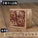 財布 二つ折り 本革 TKcraft 手彫り カービングウォレット タイ職人 ハンドメイド 牛革 レザー メンズ プレゼント ギフトBox付 ブラウン