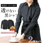 レディース 黒シャツ2枚セット 飲食店・カフェの制服に ブラウス 長袖 ワイシャツ ブラック レギュラー スキッパー 透けない 飲食店 バイト 4L 5L 6L [M便 1/2]