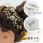 パール ビジュー 2点セット Uピン 簪 アレンジ 髪飾り 和装 成人式 ヘアピン 髪飾りパーツ 洋装 リーフ ゴールド シルバー