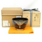 【四月の特売品】陽炎園 岩崎新定作 膳所焼 胴〆茶碗 胴しめ 茶道具【中古 美品】