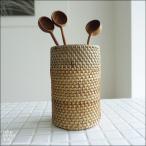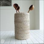 ラタンカトラリースタンドN ペンスタント 箸立て 手編みホルダー 箸たて キッチン収納 ナチュラルホワイト 籐 手づくり 自然素材
