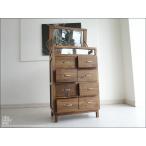 チーク無垢材 ショーケース付チェストMed 整理タンス ナチュラル 箪笥 ガラスケース 収納 引出し八杯 真鍮金物 銘木家具