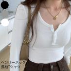 [限定ポイント10倍UP]ヘンリーネック レディース Tシャツ トップス 長袖 韓国ファッション プールオーバー リブ 素材【メール便】 [M便 1/1]