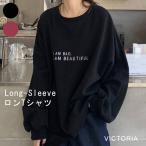 ロンT レディース 長袖 ゆったり カットソー ロゴ トップス オーバーサイズ ビッグシルエット【メール便】 [M便 1/1] 22F35211