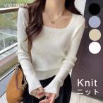 リブニット トップス レディース 長袖 スクエアネック 細見え 細リブ デコルテ きれいめ 22F37214 【メール便】 [M便 1/1]