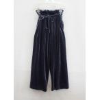 NICE CLAUP ナイスクラップ ベロア調 ハイウエスト ワイドパンツ ベルト F ネイビー系ブルー