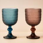 エンボスガラス ゴブレット 高さ14.5cm ペア ワイングラス セット ゴブレットグラス 脚付き ガラス アンティーク調 おしゃれ クリスマス