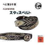 スタッズベルト 革 本革 牛革 ヘビ革バックル ヘビ革パッチ へび 蛇 パイソン ウエスタンベルト BLACK 日本製 ハンドメイド