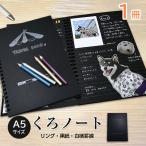 くろノート A5| ブラック ノート メモ帳 手帳 日記 シンプル ラメペン・白ペンが映える リング 黒紙 罫線 1冊