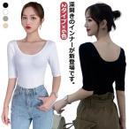 深あき インナー レディース 7分袖 オフショルダー肩開き 肩あき 深開き 春秋 夏 長袖 肌着 ランドネック バレエネック 肩開き 襟ぐり広め 服か