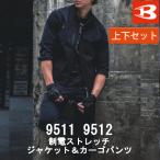 送料無料 上下セット バートル BURTLE 春夏用 制電ストレッチジャケット 9511 カーゴパンツ 9512 作業着 スポーティ