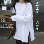 tシャツ レディース 長袖tシャツ カットソー 安い ロンT トップス ゆったり 重ね着 プルオーバー サイドスリット レイヤード 無地 カジュアル おしゃれ