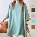 tシャツ レディース 無地 半袖 ミドル丈 人気 安い 着やせ おしゃれ 体型カバー 5分袖 トップス tシャツワンピース ゆったり 袖あり リーズナブル