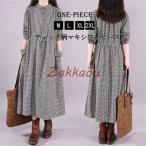 ワンピース シャツワンピース ロングワンピース チュニック 秋 レディース チェック柄 マキシ丈 長袖 体型カバー 綿麻 ゆったり 大きいサイズ 夏 30代 40代 50代