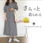 シャツワンピース レディース 半袖 ワンピース 40代 ロング丈 春 夏 チェック柄 きれいめ 体型カバー お洒落 着痩せ 通勤 通学 カジュアル ゆったり 30代 50代