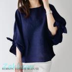 ブラウス 七分袖 レディース チュニック 無地 シャツ 春 夏 春夏 紺 半袖 リボン袖 ゆったり おしゃれ 体型カバー ネイビー きれいめ トップス オフィス