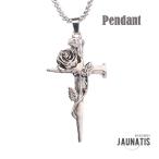 ペンダント ネックレス 十字架 クロス 薔薇 バラ ローズ 花 釘 釘十字架 ビジュアル系 アンティークシルバー メンズ レディース 男女兼用