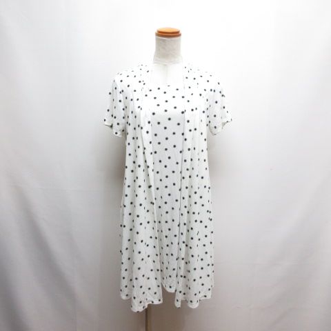ヒロココシノ HIROKO KOSHINO 美品 レイヤード風 半袖 ワンピース 総柄 40 白 ホワイト 日本製