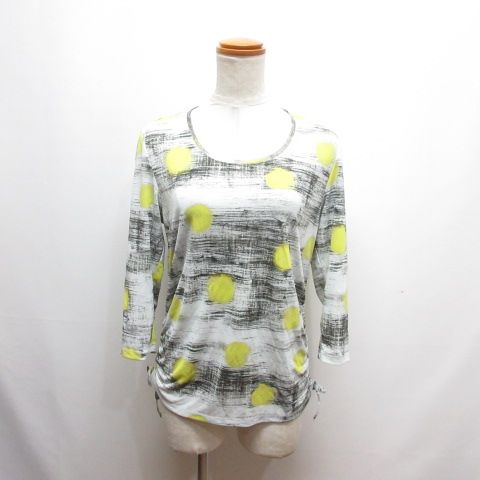 ヒロココシノ HIROKO KOSHINO 美品 ドット柄 七分袖 シアー カットソー Tシャツ 40 グレー系 サイドシャーリング 日本製