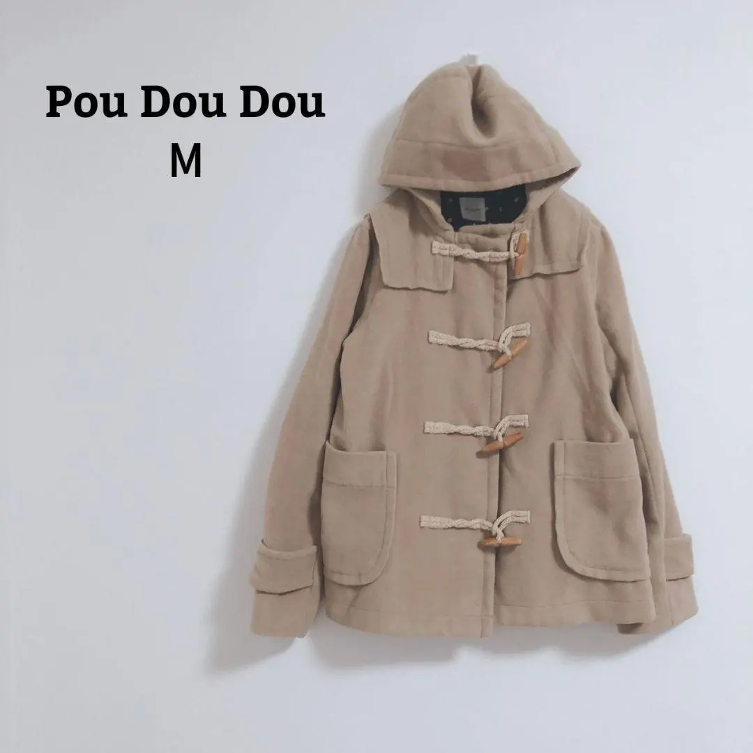 プードゥドゥ ダッフルコート 毛混 ショート丈 フード 後ろスリット М