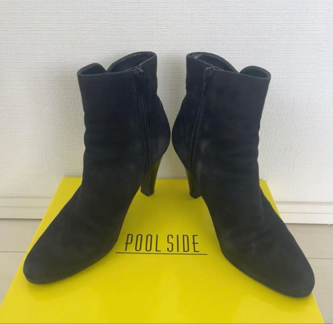プールサイド 黒 スエード ブーティ ヒール8cm 24.5cm