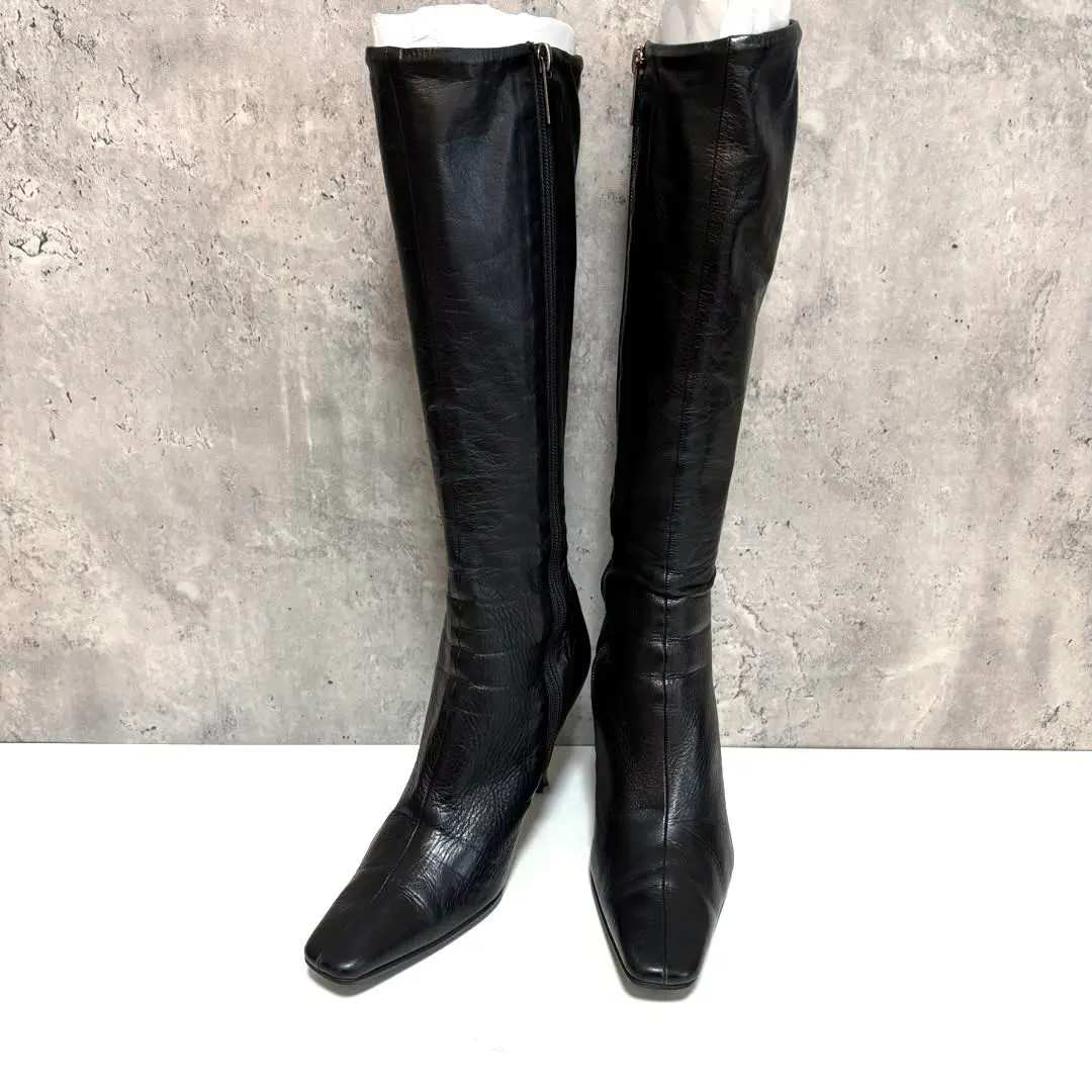 【POOL SIDE】ロングブーツ 23.5cm スクエアトゥ ブラック ジップ