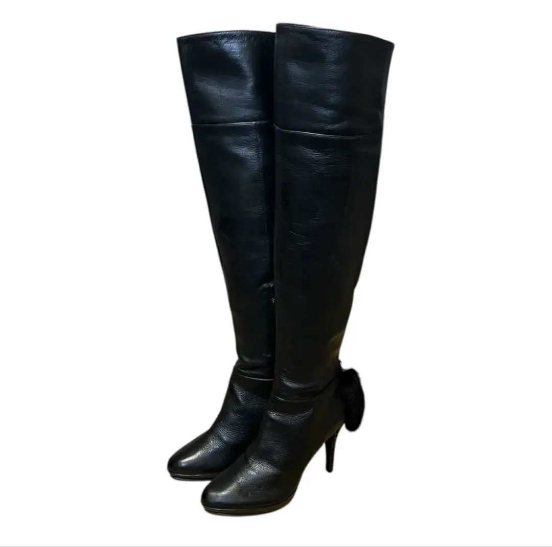 【POOL SIDE 】ニーハイブーツ ファーしっぽ付き 23.5 ヒールラメ