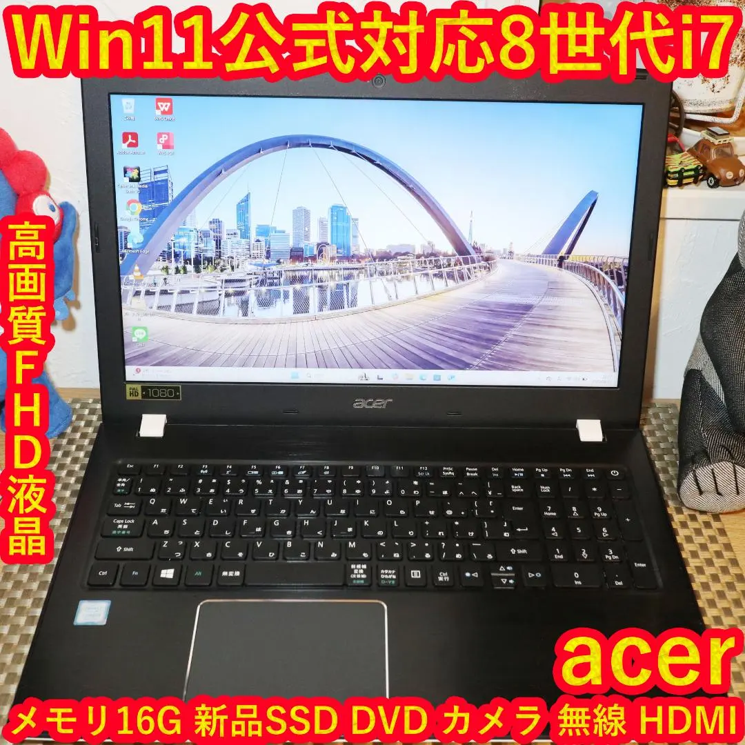 Win11公式対応8世代i7/メ16G/新品SSD/DVD/無線/カメラ/FHD