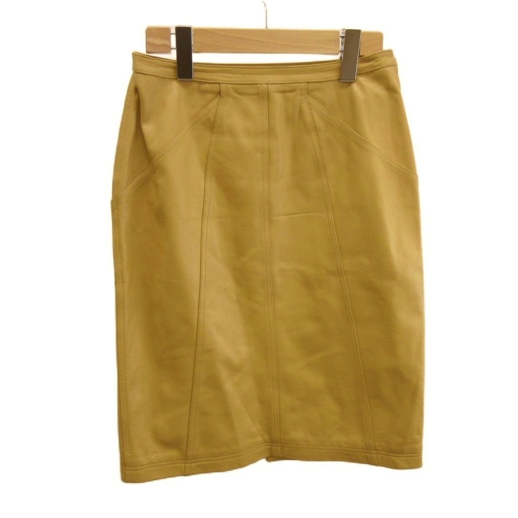 アトリエサブ ATELIER SAB タイトスカート 羊革 38 ベージュ 無地 膝丈 /YU ■ECA003
