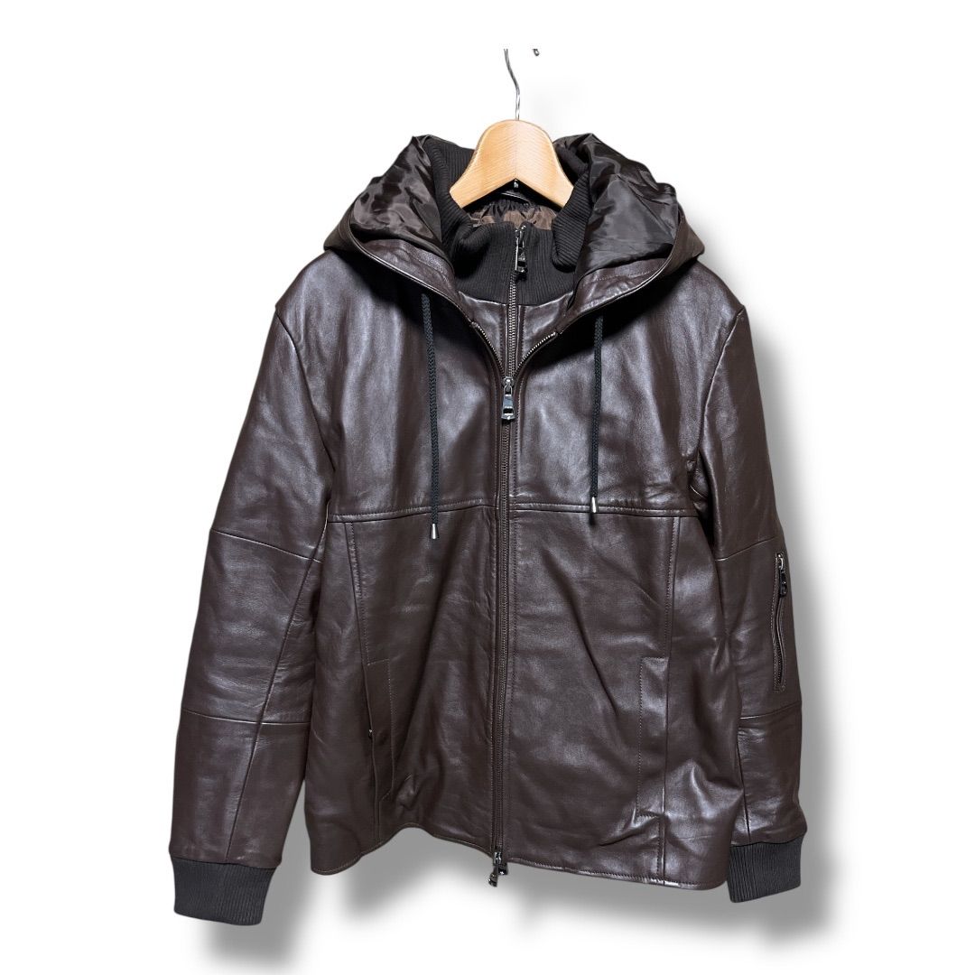 AKM contenporary エーケーエムコンテンポラリー レイヤード シープレザー キルティング 中綿フード ライダースジャケット アウター 参考価格99000円 メンズ サイズM ブラウン 冬 ゴーゴー古着久喜倉庫店 43 No.K1767Y