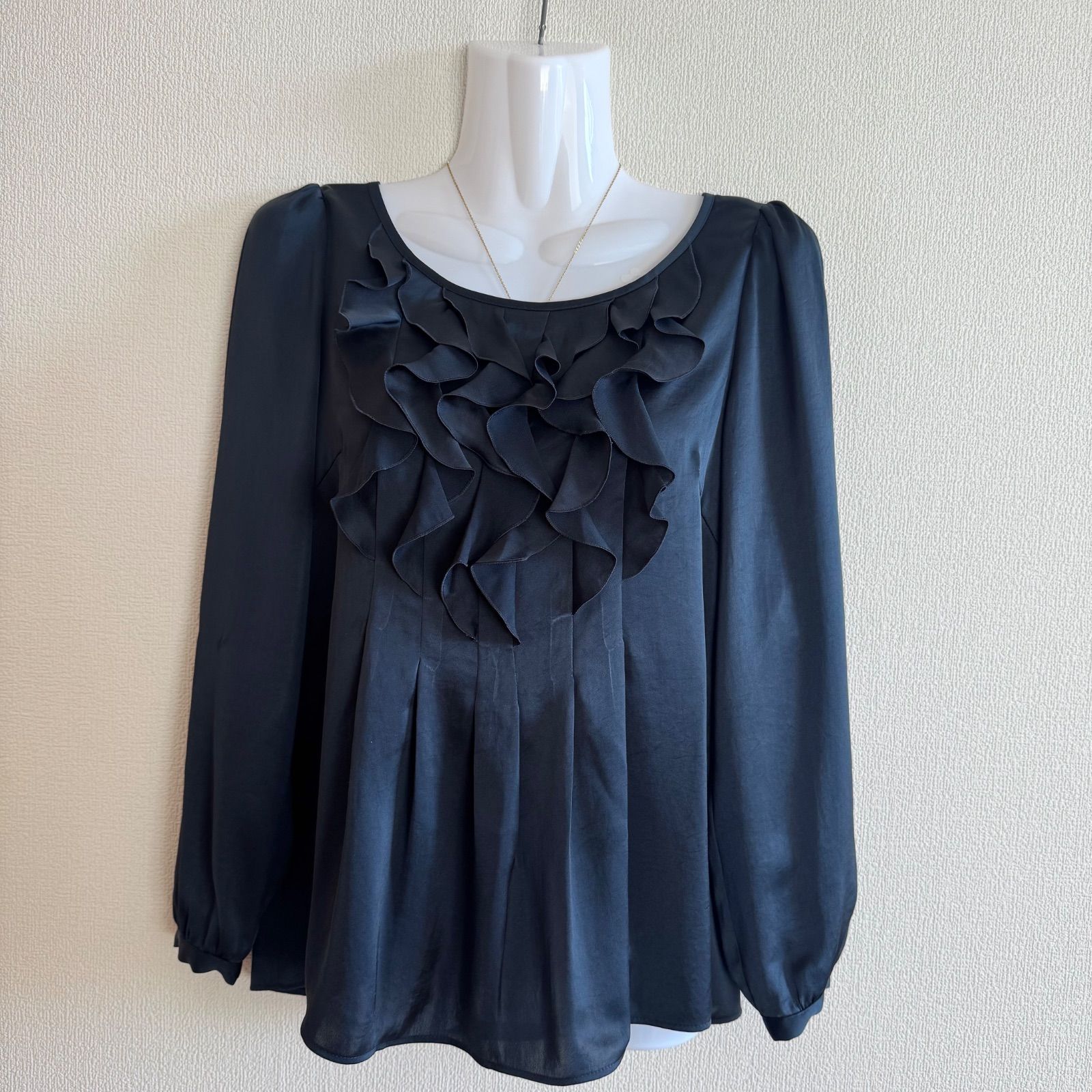 ANAYI アナイ フリルブラウス ネイビー 38 シフォン 長袖 上品 フェミニン 通勤 オフィス