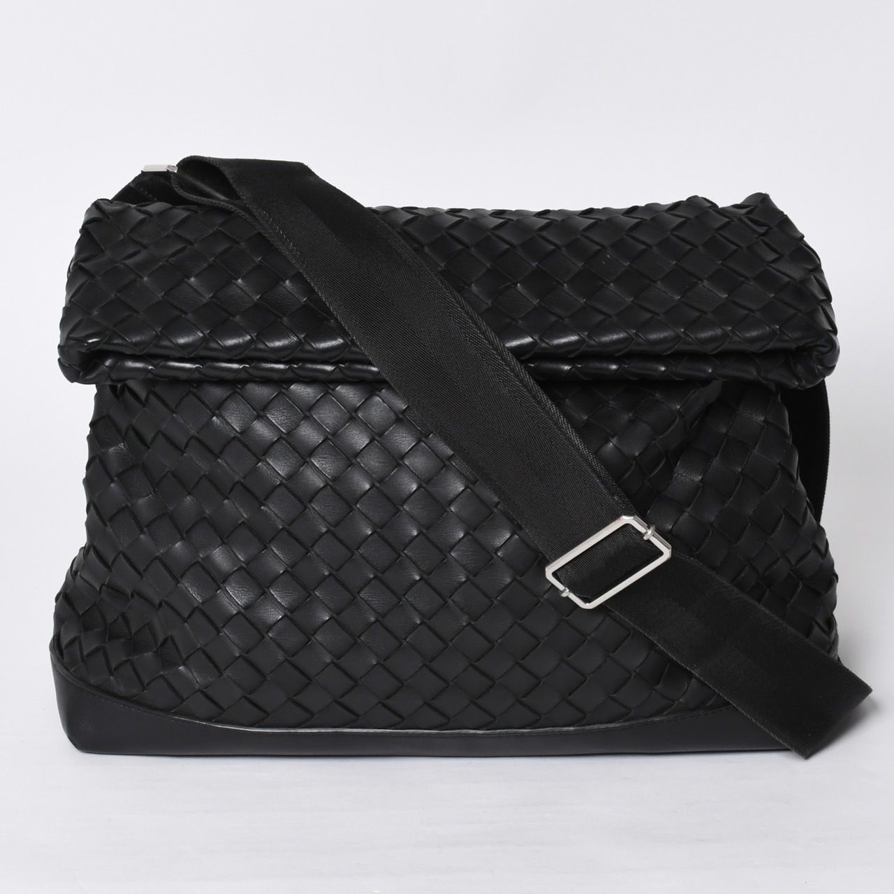 BOTTEGAVENETA ボッテガヴェネタ イントレチャート ショルダーバッグ 651836 レザー ブラック シルバー金具 美品 中古 4a000373