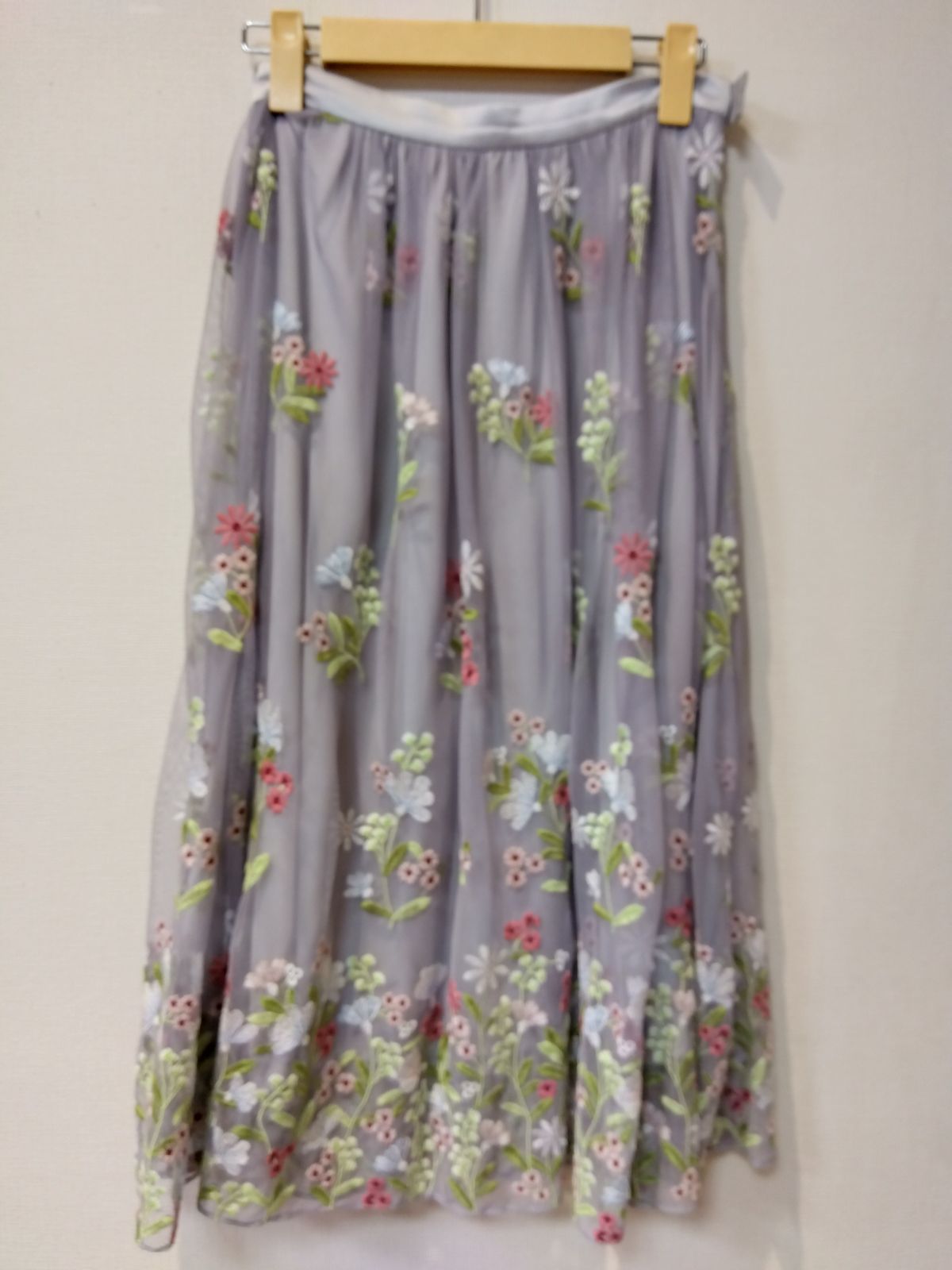 M20 アナトリエ anatelier スカート ロング フレア 花柄 刺繍 チュールスカート