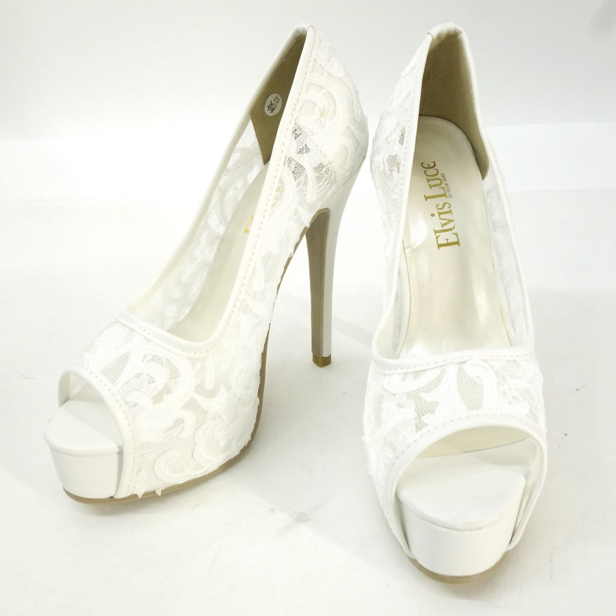 Elvis Luce エルビスルーチェ レース オープントゥ パンプス ハイヒール Mサイズ 箱無 ※中古