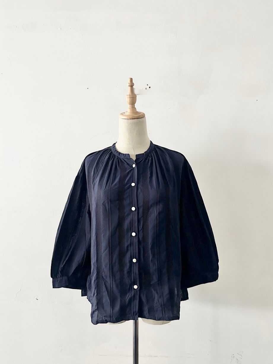 【美品】FANEUIL ドビーストライプ ギャザー ブラウス