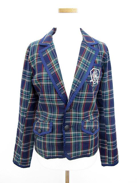 メゾンギルフィー MAISON GILFY ジャケット テーラード チェック ワンポイント 紺 ネイビー 緑 グリーン