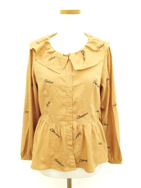 ハンブル・バイ・パラビオン Hamble by Par Avion ブラウス 長袖 シフォン ペプラム 刺繍 ONE 茶 ブラウン /KY