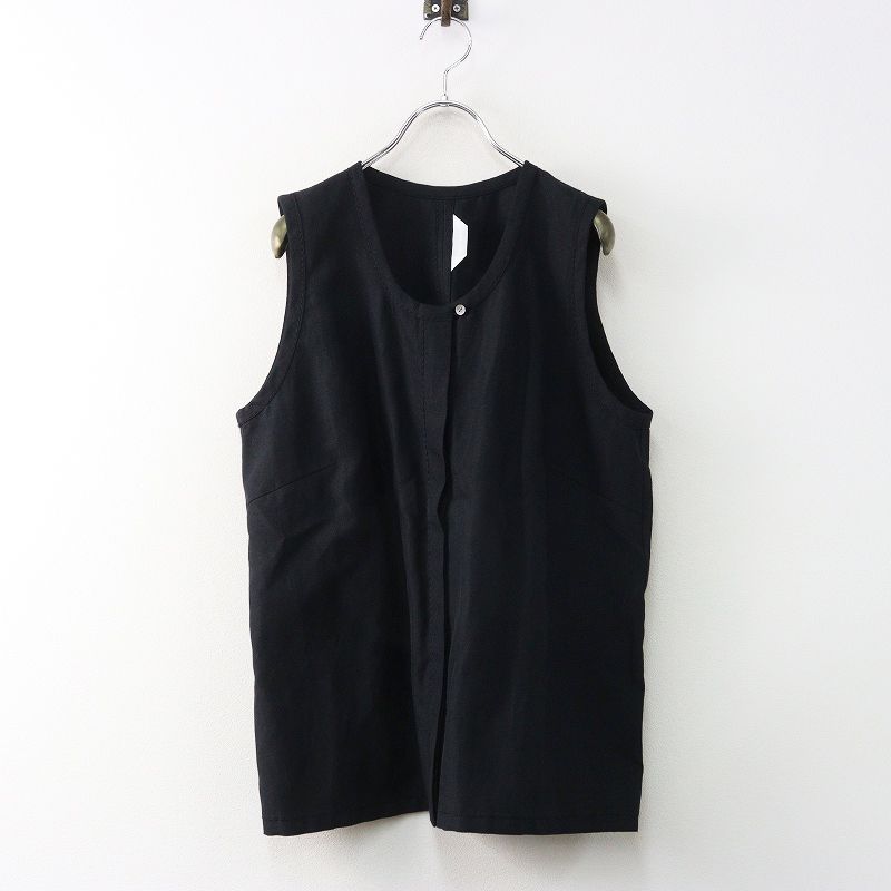 美品 2024SS ホームスパン homspun ウールリネン 比翼ベスト F|ブラック ノースリーブ ジレ 羽織り ジャケット【2400014915815】