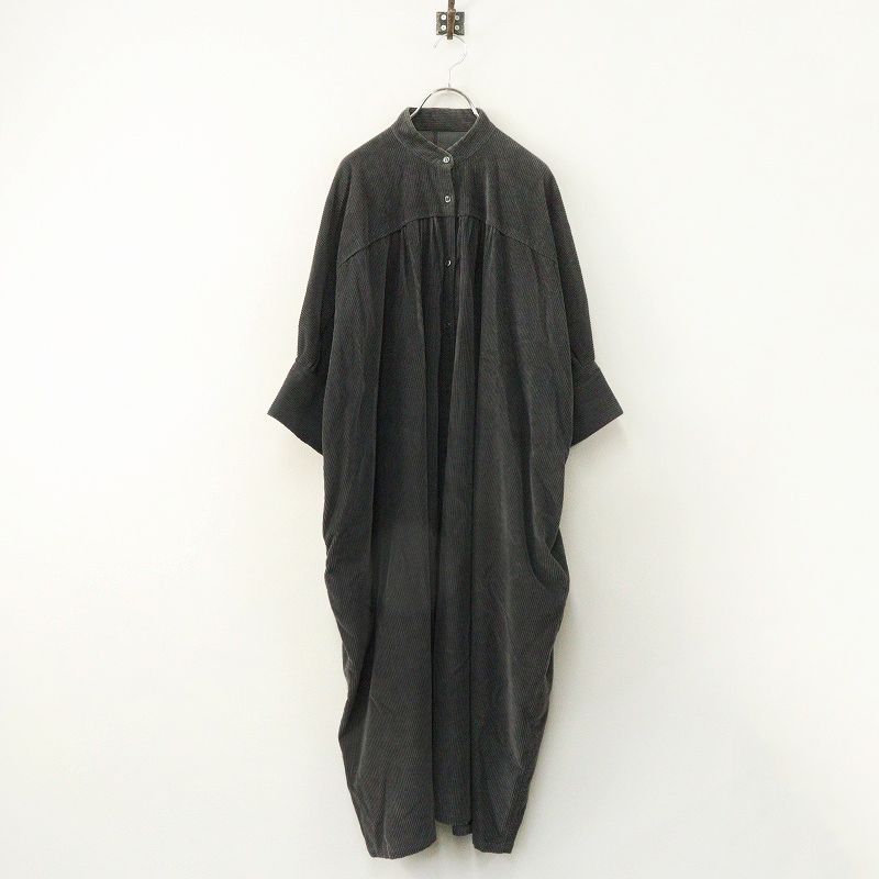 オネット Honnete コーデュロイ3/4ショートスリーブギャザードレス\グレー ワンピース バンドカラー コットンカシミヤ【2400014892536】