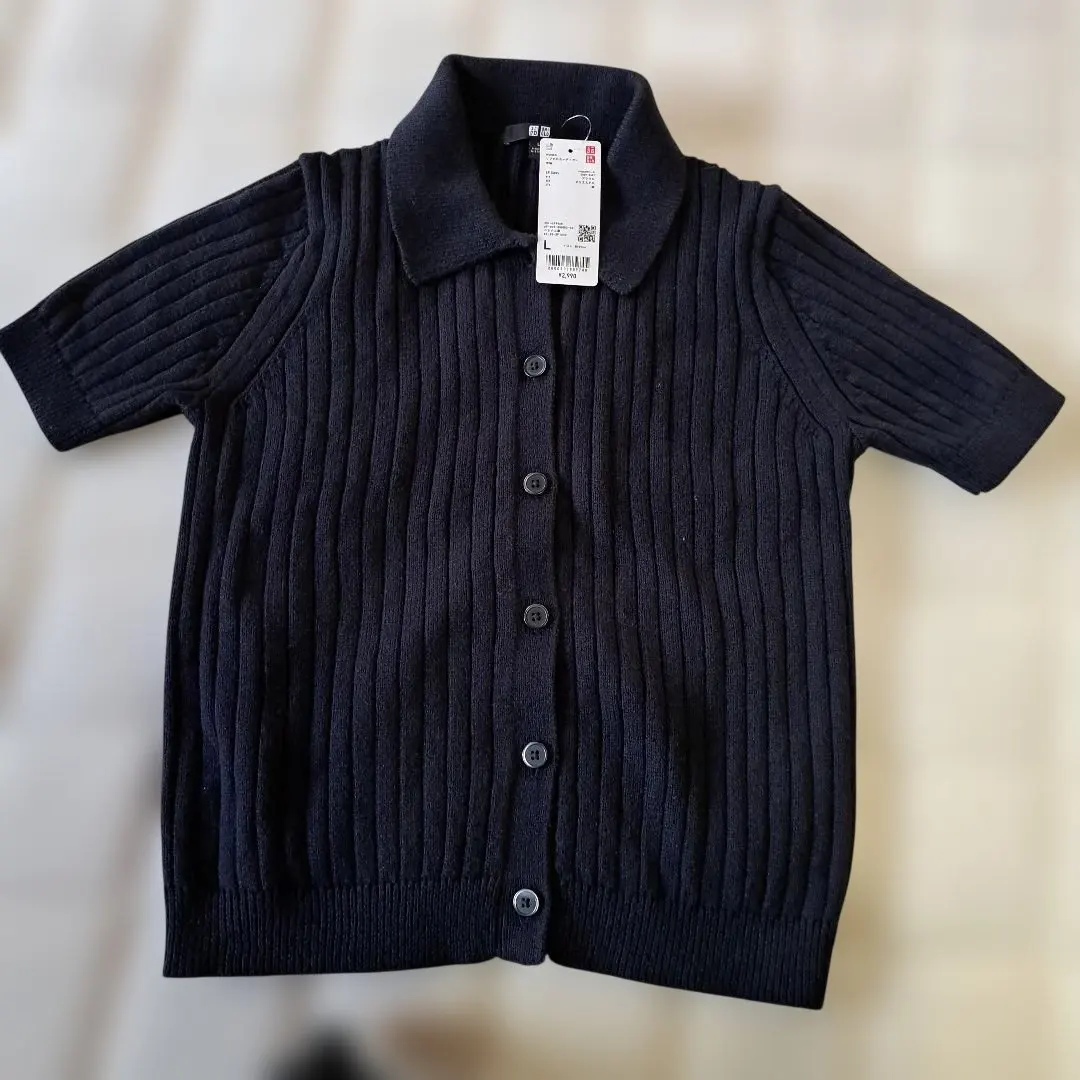 美品 ユニクロ メッシュカーディガン 長袖 ブラック L