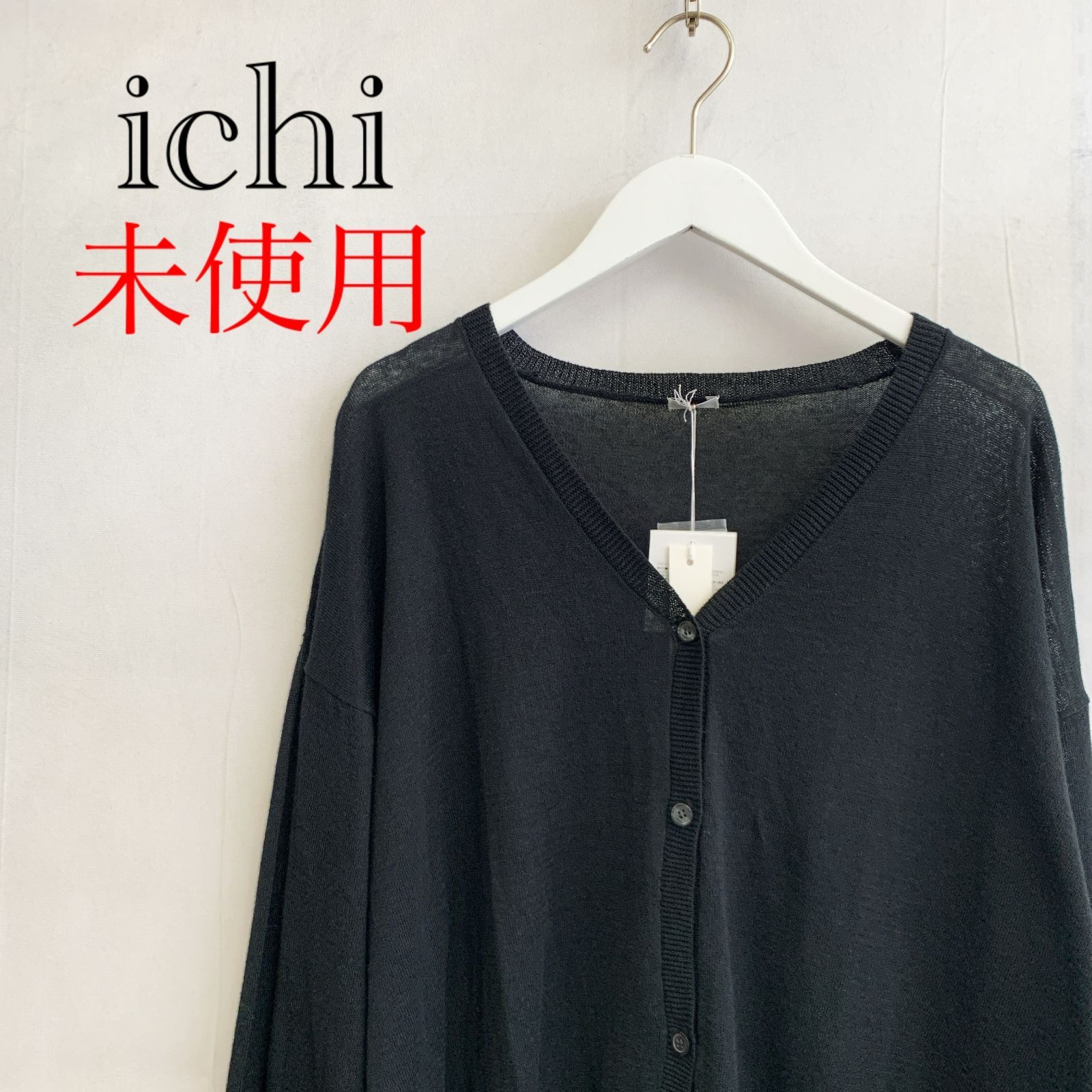 未使用 ichi イチ 麻 綿 長袖 シアー カーディガン 231162 C ナチュラル F ブラック 参考定価¥10,450 レディース ファッション _218021