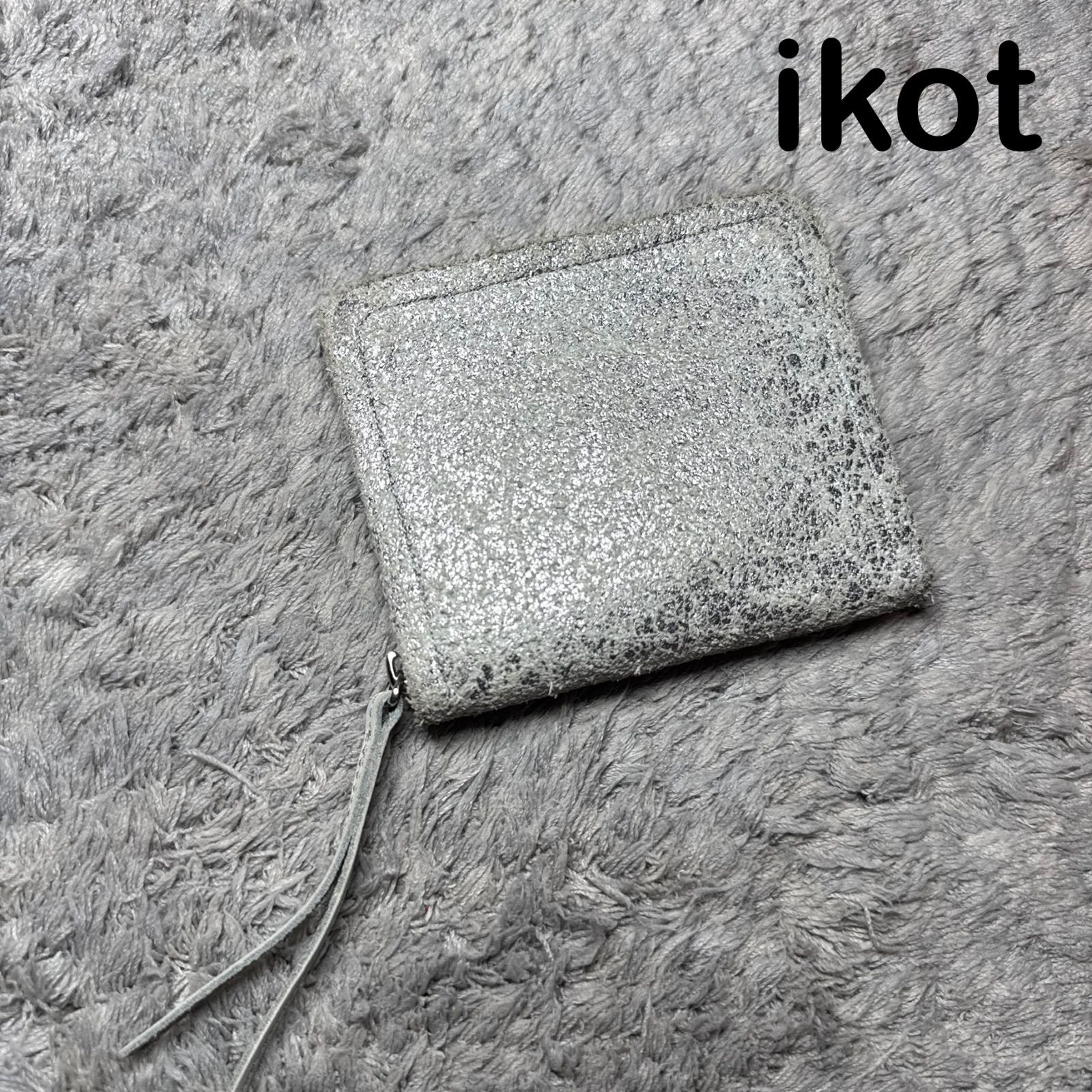 ikot イコット 二つ折り財布 レザー シルバー ラウンドファスナー