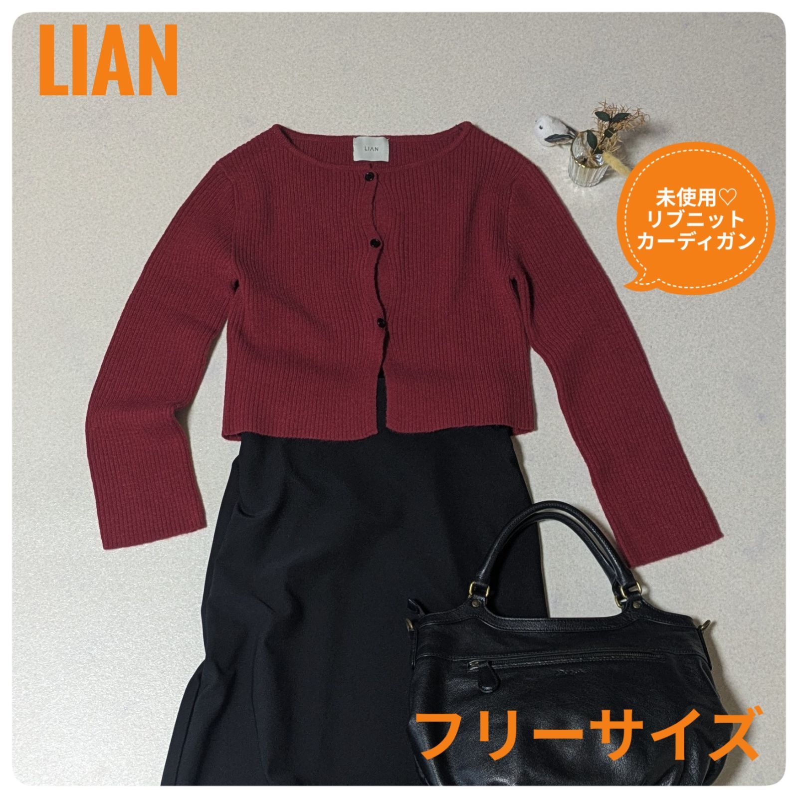 【未使用】LIAN リアン センターホールリブニットカーディガン レッド フリーサイズ