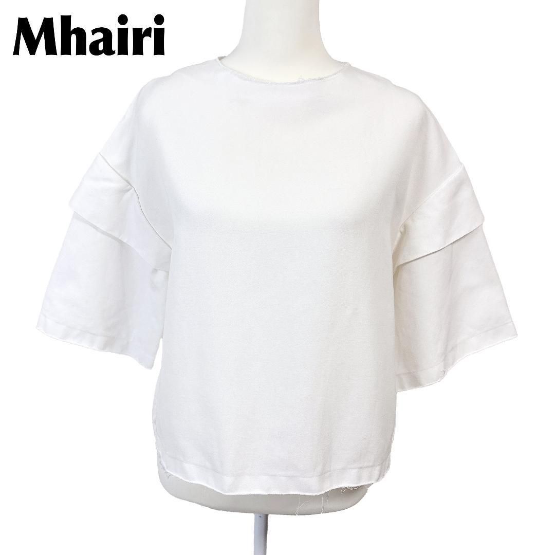 【美品】 Mhairi ワイドプルオーバーブラウス 五分袖 背面絞り紐 ホワイト