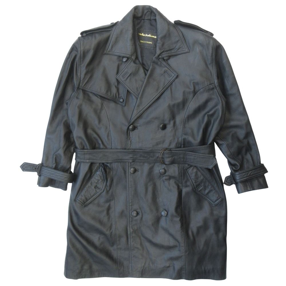 MODA ITALIANA モダイタリアナ レザー コート ジャケット ブルゾン 長袖 ベルテッド ヴィンテージ HBM-14SN サイズM 黒 レディース 古着 中古 USED