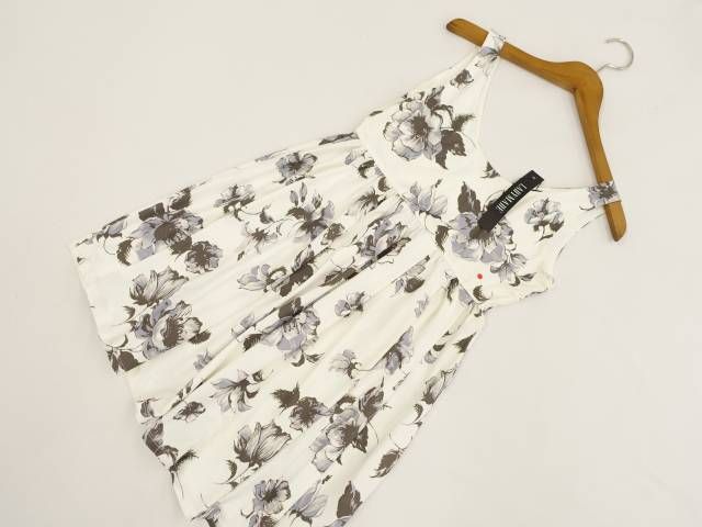 85%OFF 定価\12,800 訳あり未使用品 レディメイド LADYMADE 洗えるノースリーブ Uネック チュニック F オフホワイト地 ネイビー ホワイト 花柄