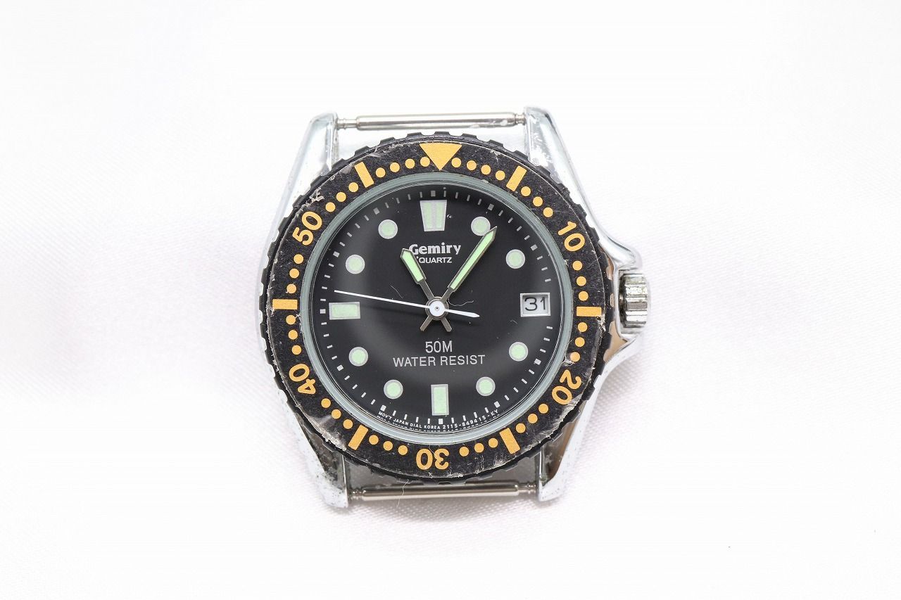 【W298-20】動作品 電池交換済 CITIZEN Q&Q Gemiry シチズン キュー&キュー ジェミリー デイト 回転ベゼル 腕時計 フェイスのみ メンズ