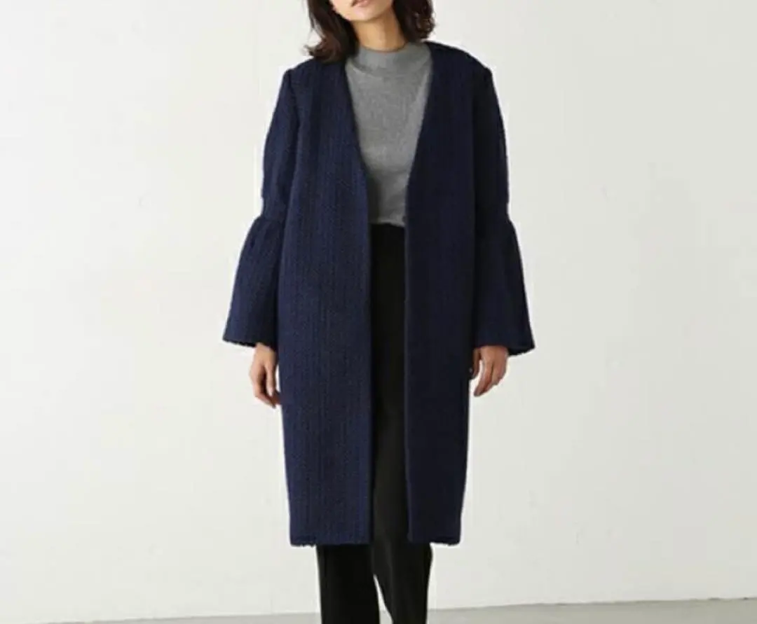 rim.ark スリーブガウンコート ネイビー ノーカラー