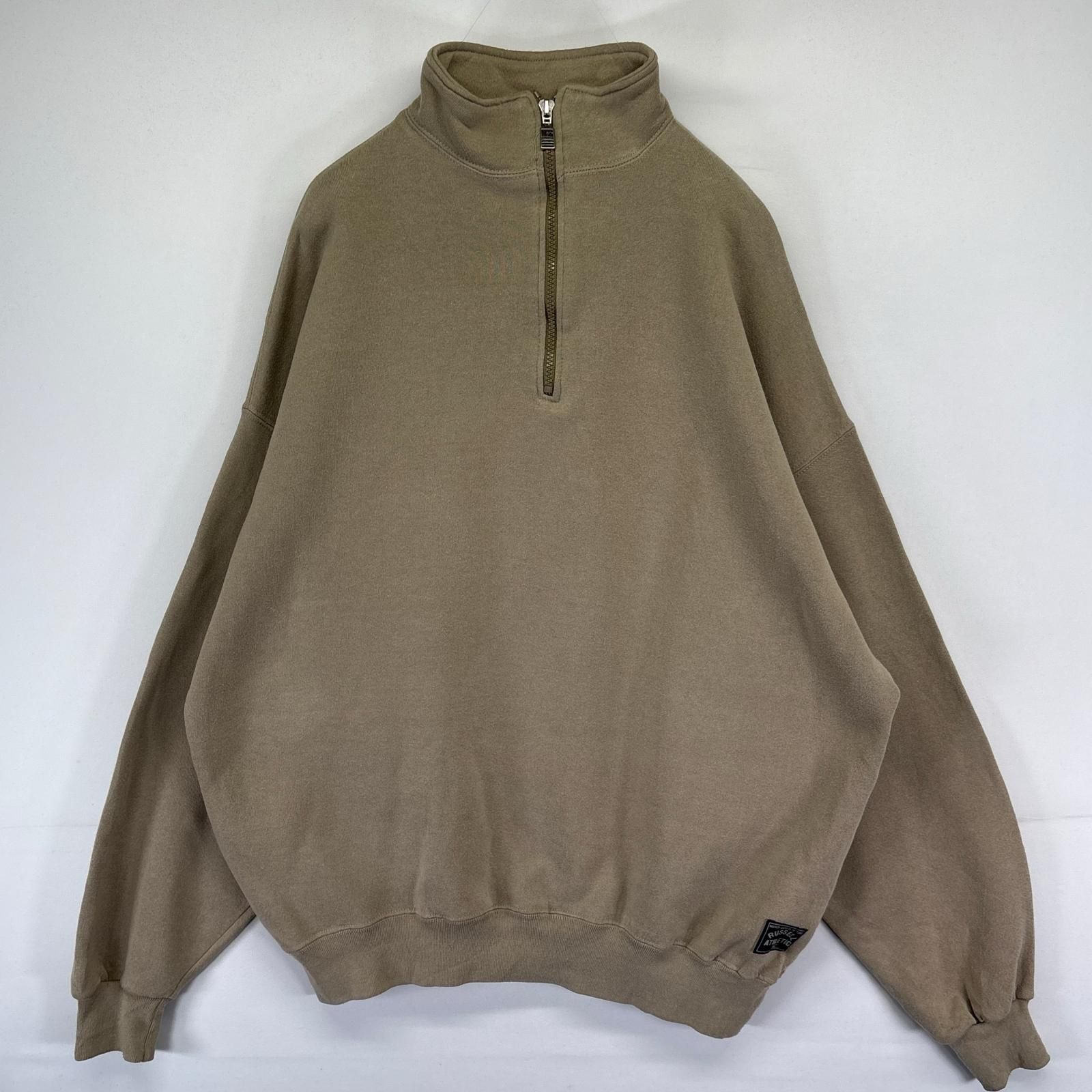 古着 90's/90年代 ラッセル Russell USA製 スウェット ハーフジップ プルオーバー スウェット 2XL ベージュ系 無地 メンズ